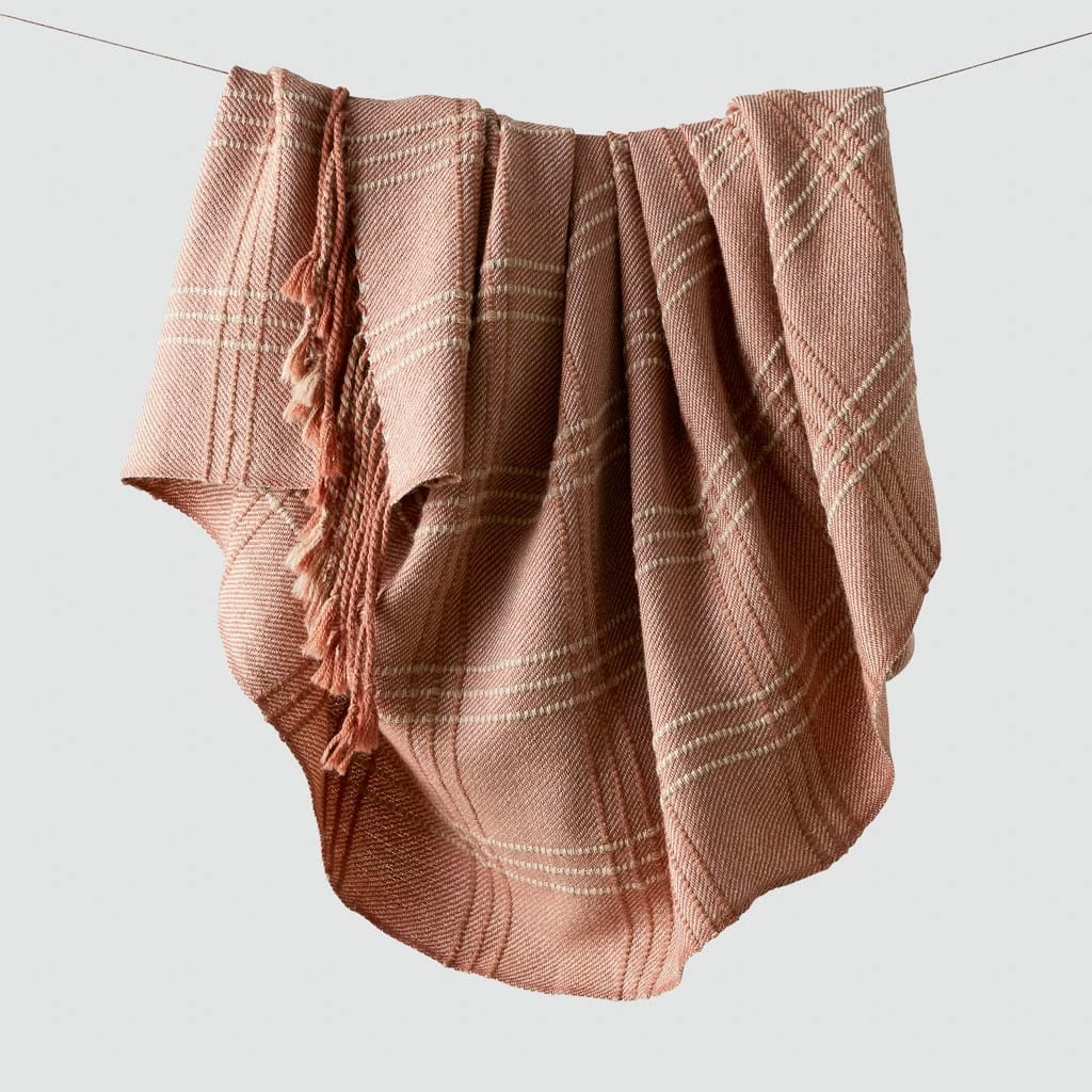 Cozy meets classic. A plain weave accented with large, raised lines, this stunning throw features a classic grid pattern that fits in any space. Available in stone blue or rich clay, each piece is finished with a hand-twisted fringe for a laid-back, boho look.