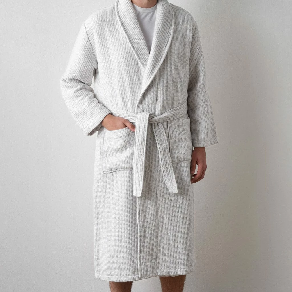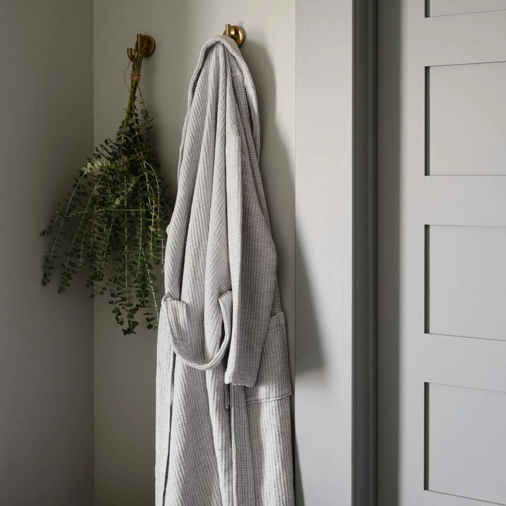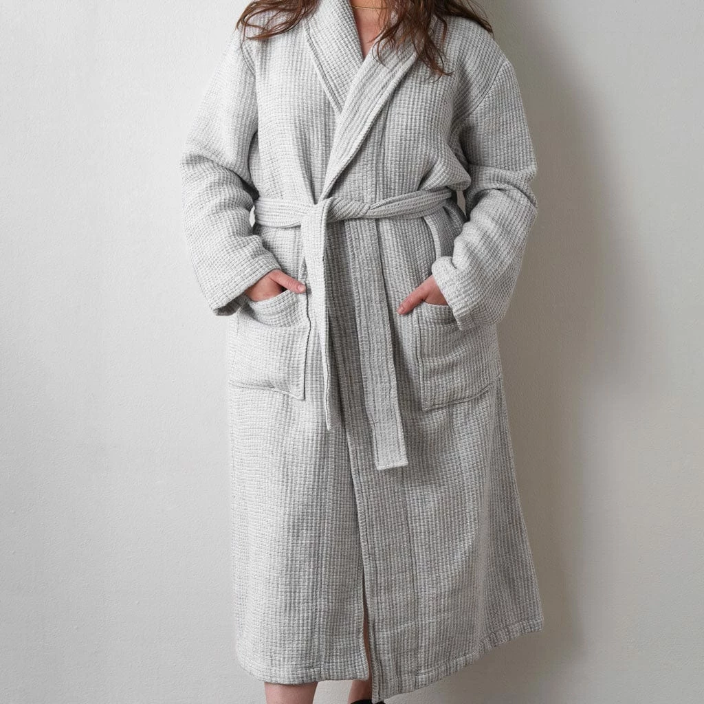 Plush cotton terry on the inside. Relaxed, lightweight linen on the outside. This incredibly soft, absorbent bath robe transforms any day into a spa day. So go on, lounge a little longer – you’ve deserved it.