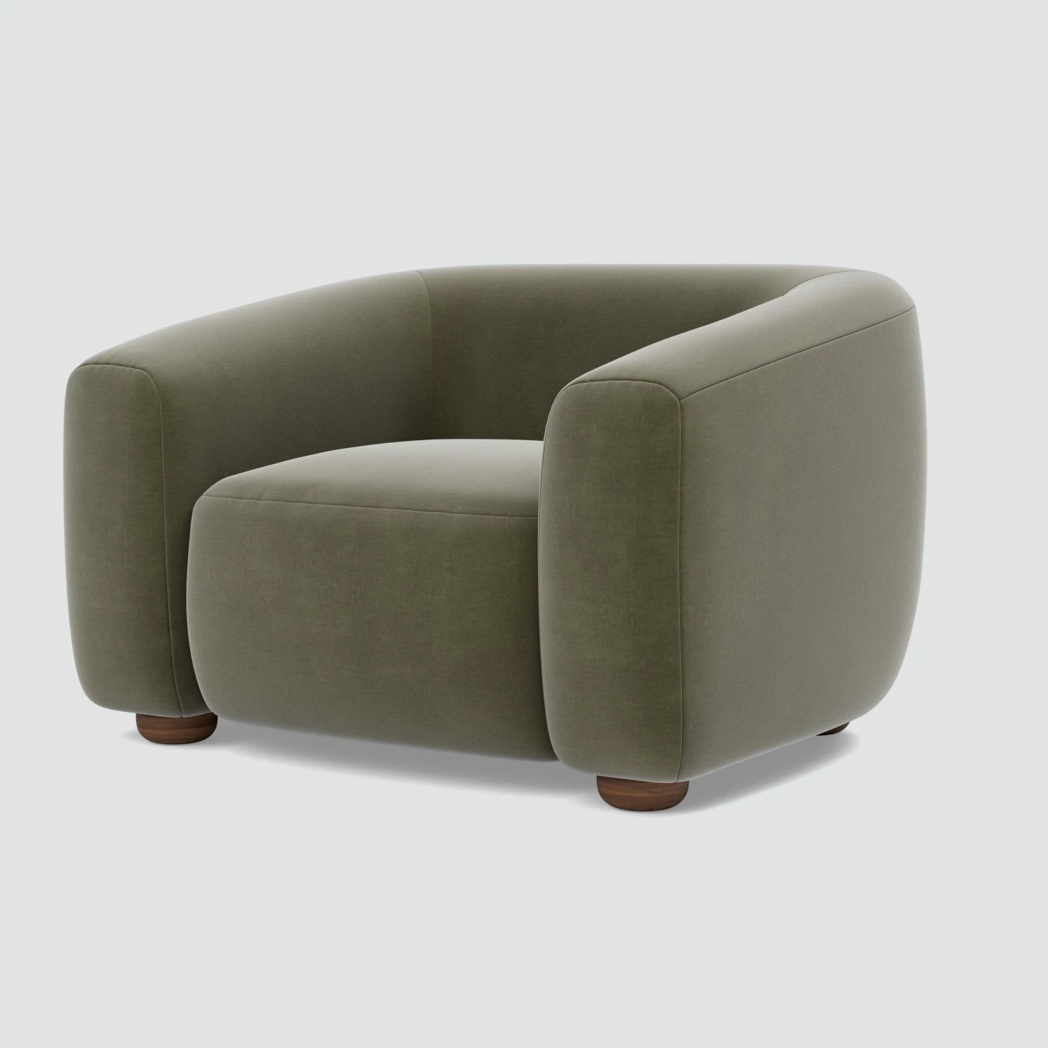 Lounge-worthy comfort meets elevated design in this modern accent chair. Designed with an extra roomy seat and high-resiliency foam, this chair invites you to curl up and lounge a little longer. With your choice of upholstery and natural wood detailing, go on and design the reading nook of your dreams.