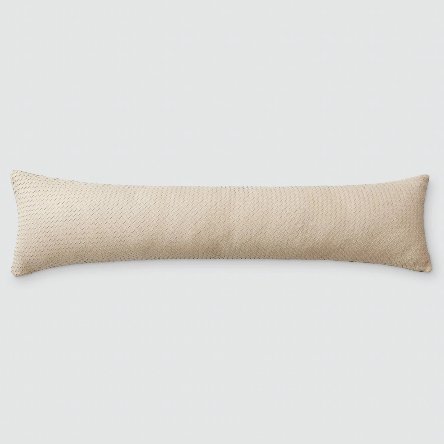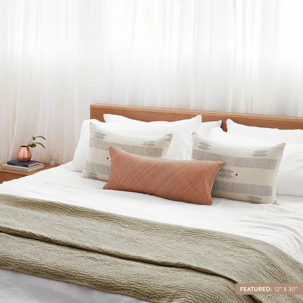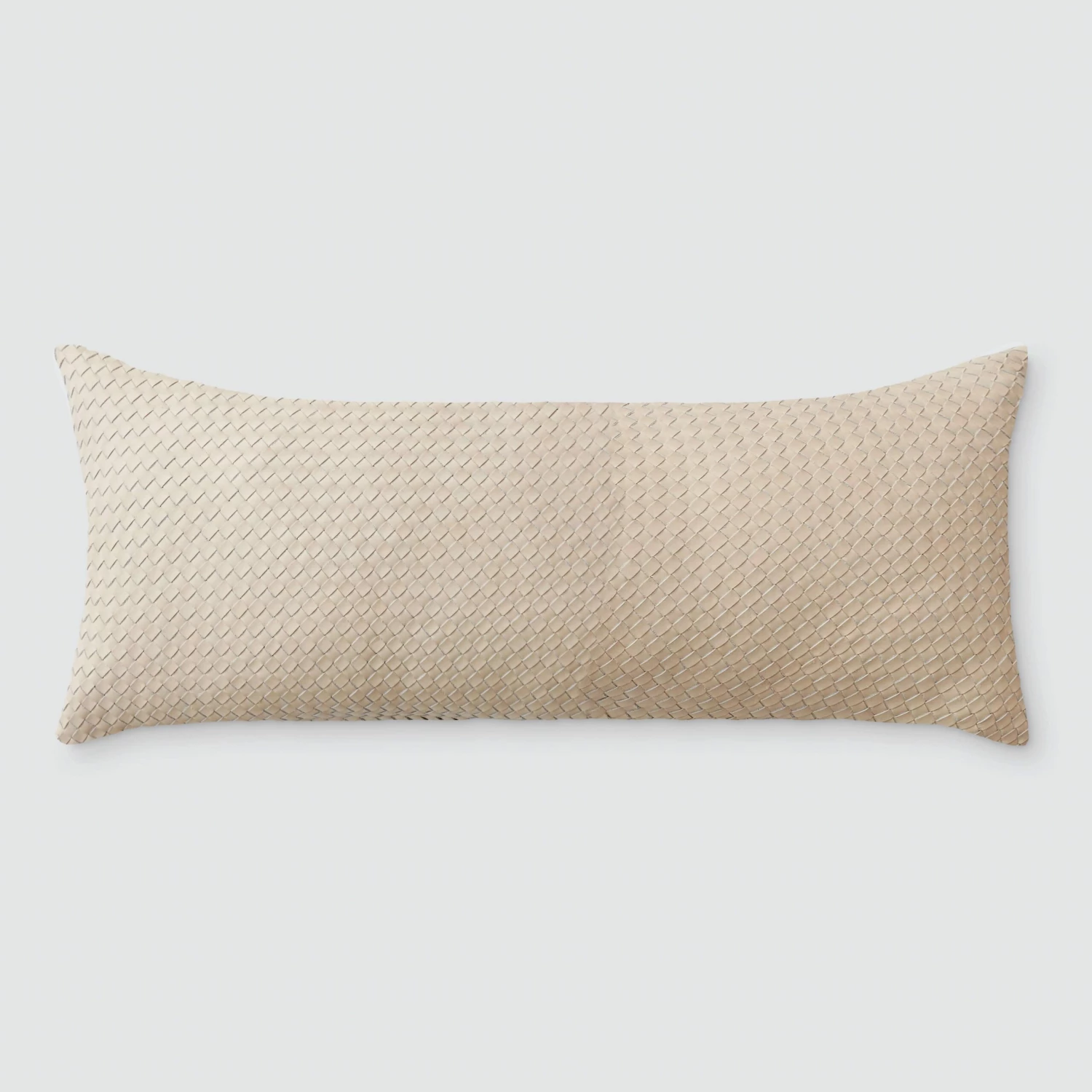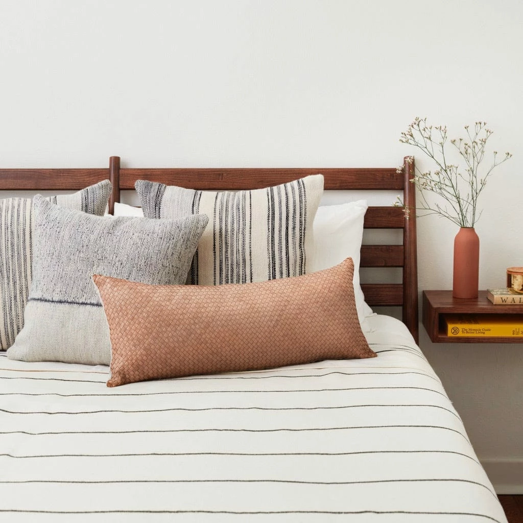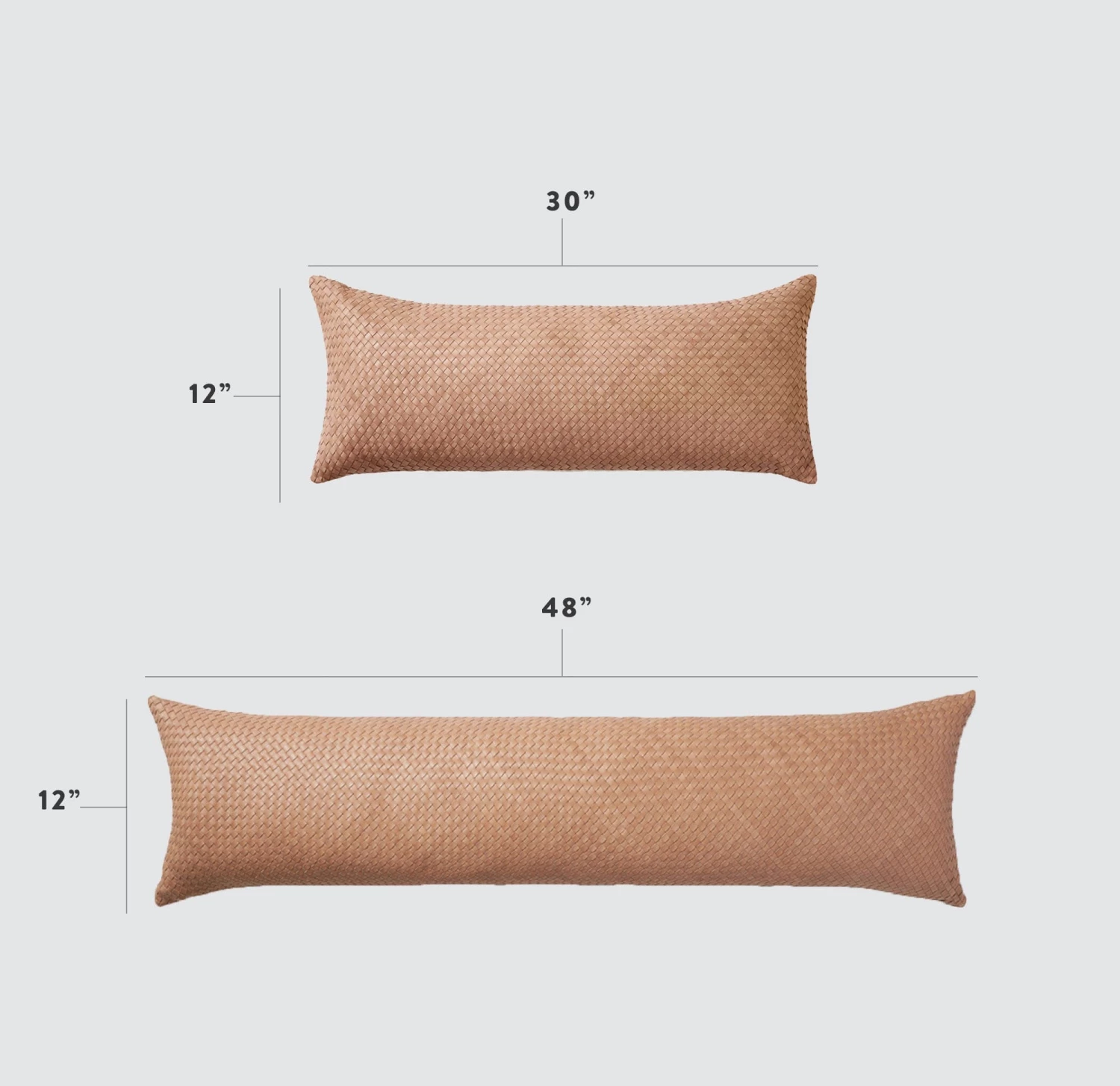 Woven from vegetable-tanned leather from Kolkata, this accent pillow instantly elevates the look of any pillow combination with its warm tan hue and luxe texture. With its dimension and detail, it makes for a luxe layer on any bed or couch setup.