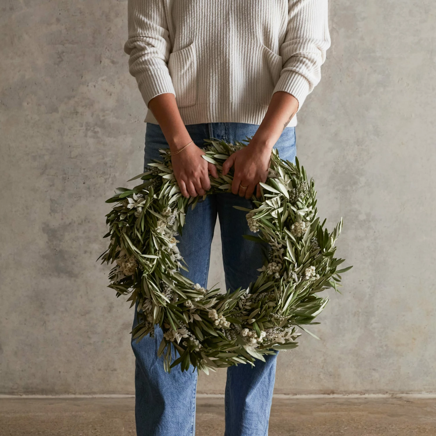 If your guests haven’t knocked yet, they’re probably still outside enjoying the natural beauty of this one-of-a-kind wreath. Weaving together fresh olive leaves with dried florals, each stunning piece is crafted with botanicals from the Pacific Northwest. A warm welcome for any occasion, each piece is perfectly styled on your door or over your mantel.