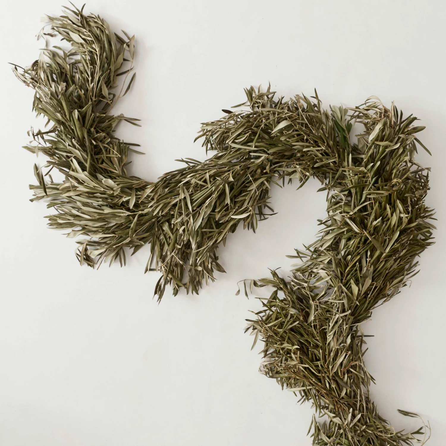 Ditch the firs. Put a modern spin on a timeless classic with this lush, elegant garland, crafted from fresh olive leaves from the Pacific Northwest. Long enough to liven up any space, each piece is sure to impress your guests all season long.