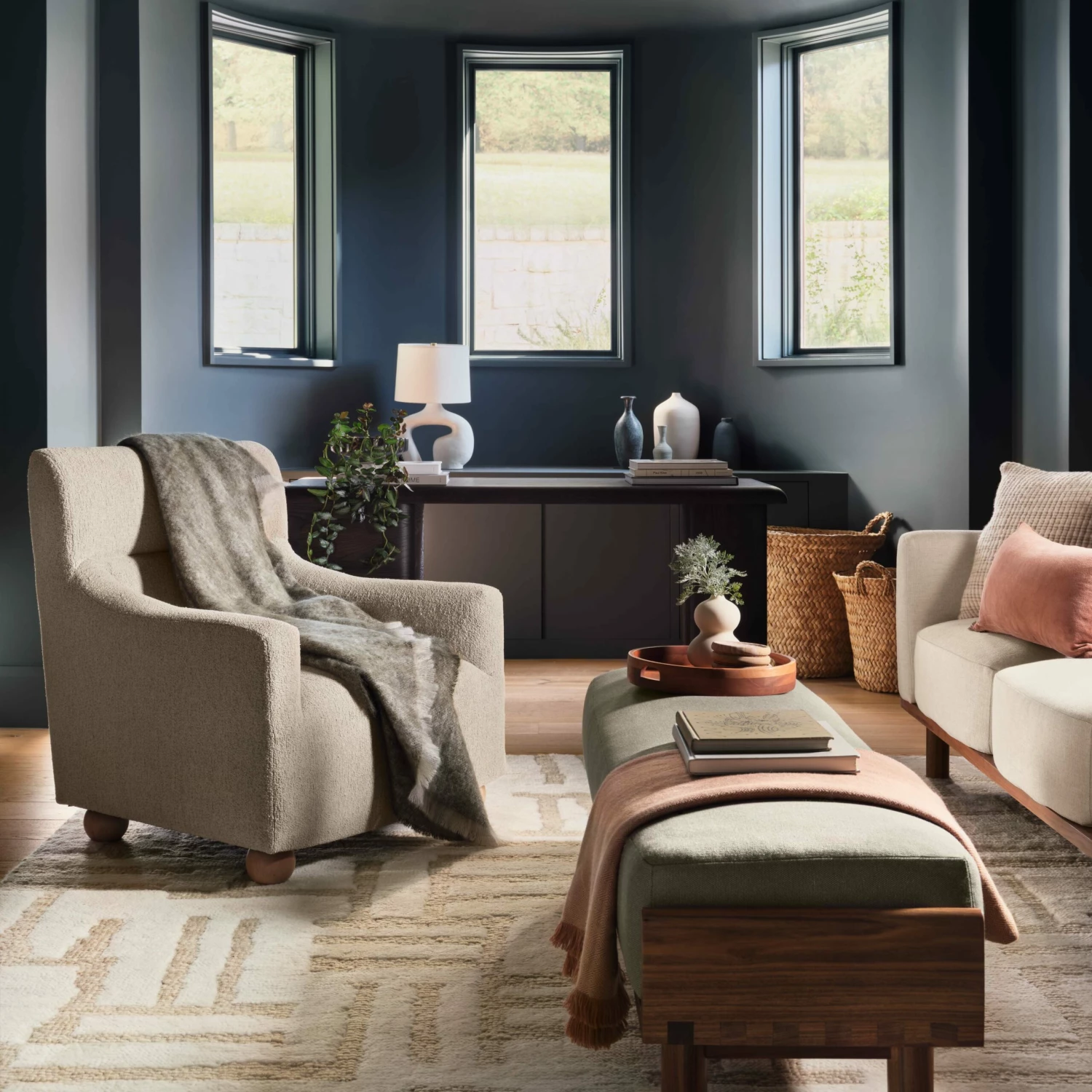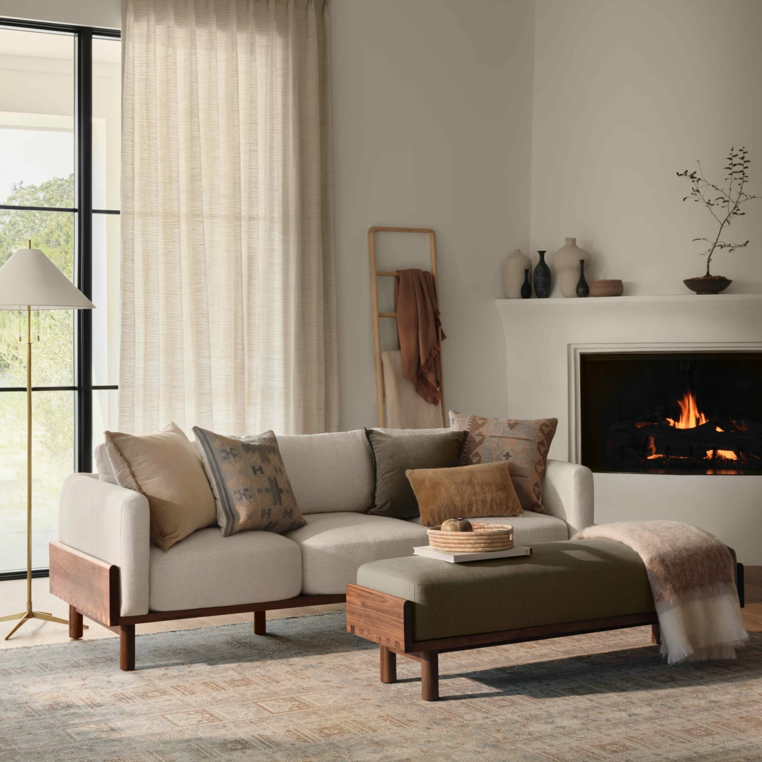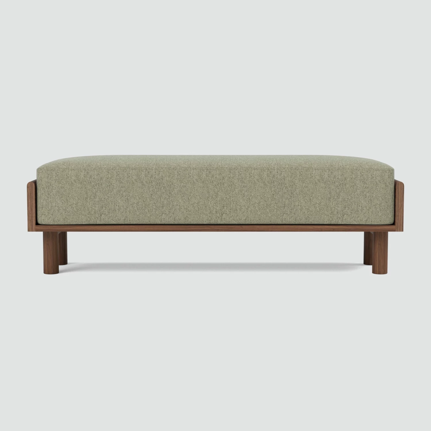 An accent that’s at home in every room, this beautiful upholstered bench mixes modern, architectural design with vintage-inspired details. Crafted with a rich walnut frame with meticulous joint detailing, every piece is upholstered with your choice of velvet or performance fabrics. Crafted for comfort, each bench is made with high-resiliency foam that’s firm, yet still incredibly plush, with the perfect sink-in feel.