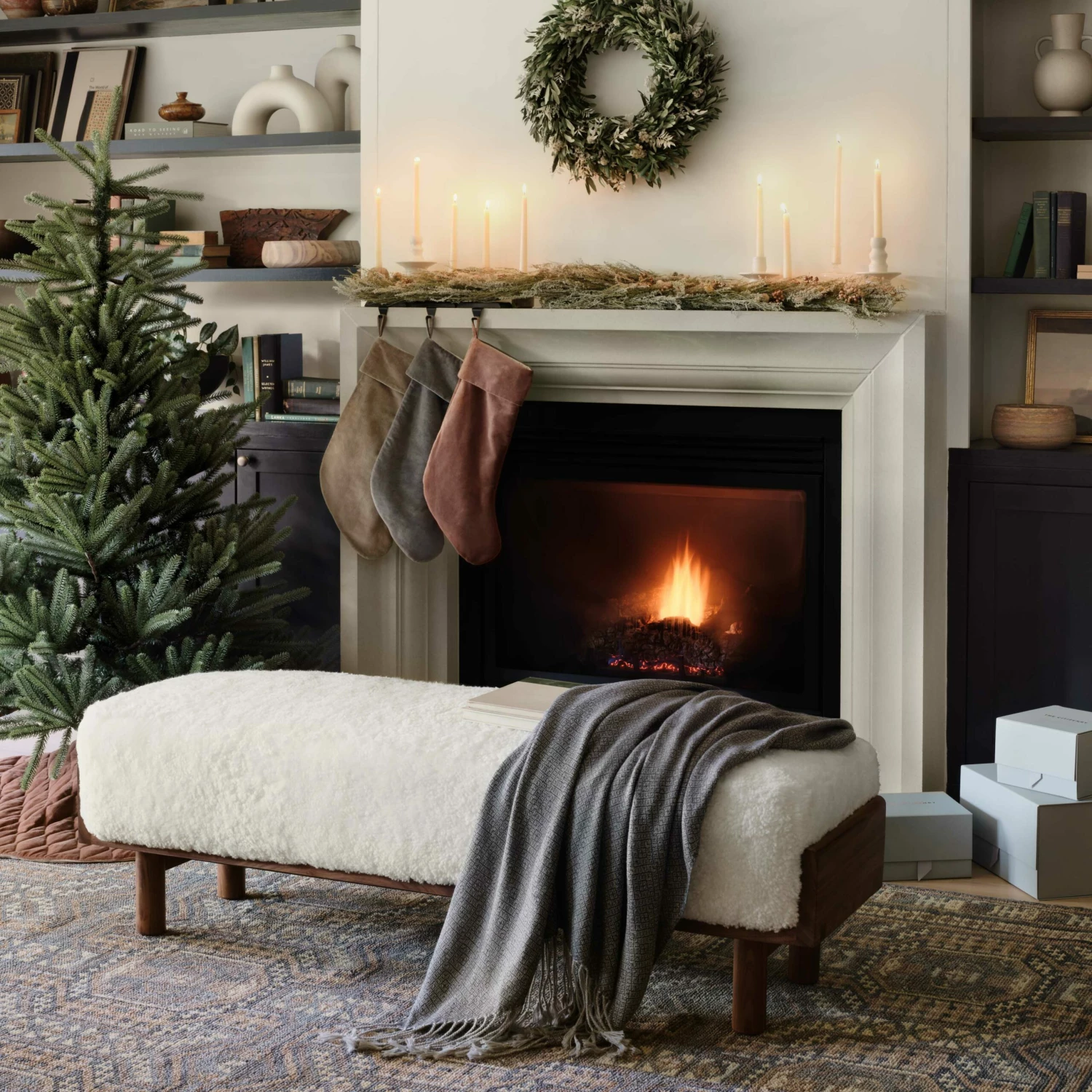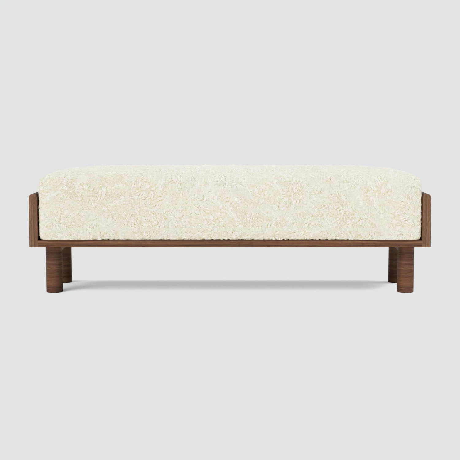 An accent that’s at home in every room, this beautiful upholstered bench mixes modern, architectural design with luxe, plush shearling. Crafted with a rich walnut frame with meticulous joint detailing, every piece is upholstered with ethically-sourced shearling from New Zealand. Crafted for comfort, each bench is made with high-resiliency foam that’s firm, yet still incredibly plush, with the perfect sink-in feel.