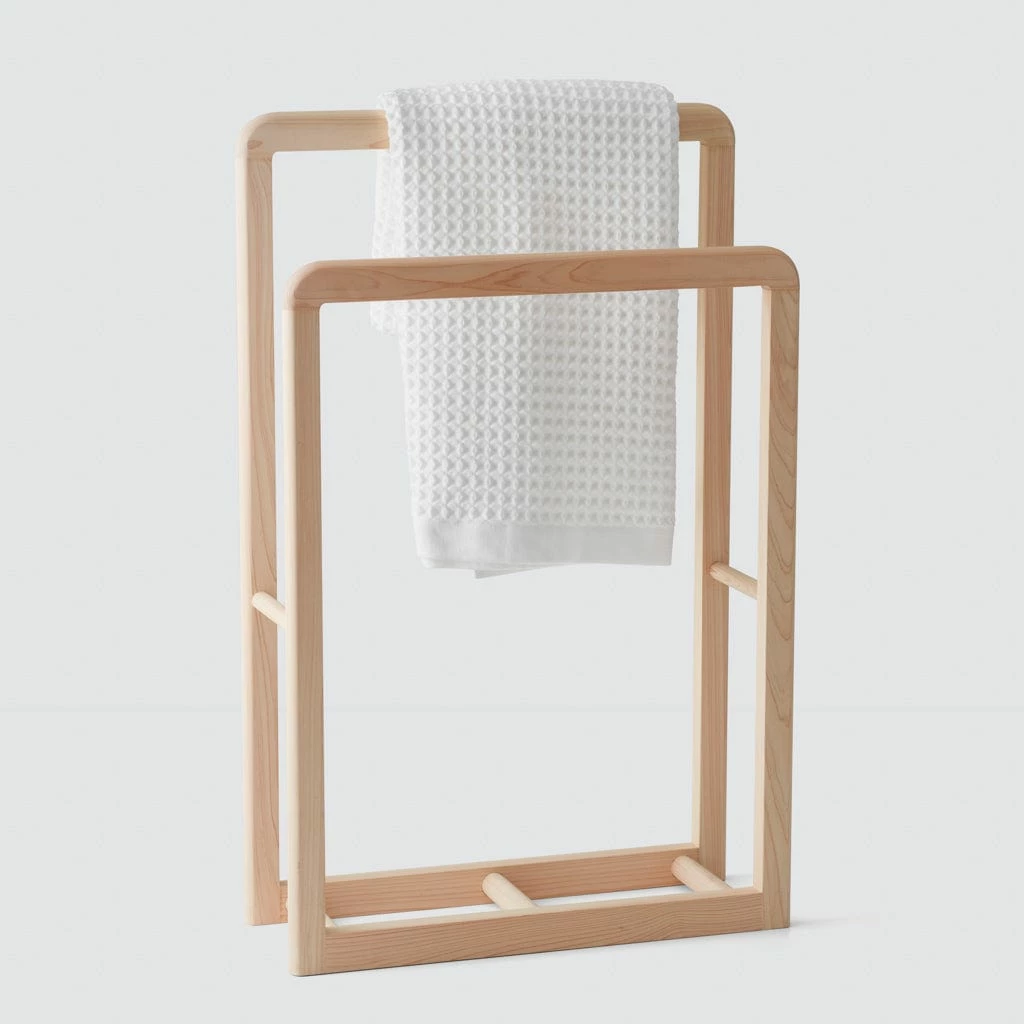Featuring a simple, effortless design and constructed using high-grade Japanese hinoki cypress, this standing rack is a total stunner. Style in your bathroom as a resting place for towels or pair it next to your sofa for your favorite throws – anywhere it goes, this rack complements your space without adding too much visual weight.