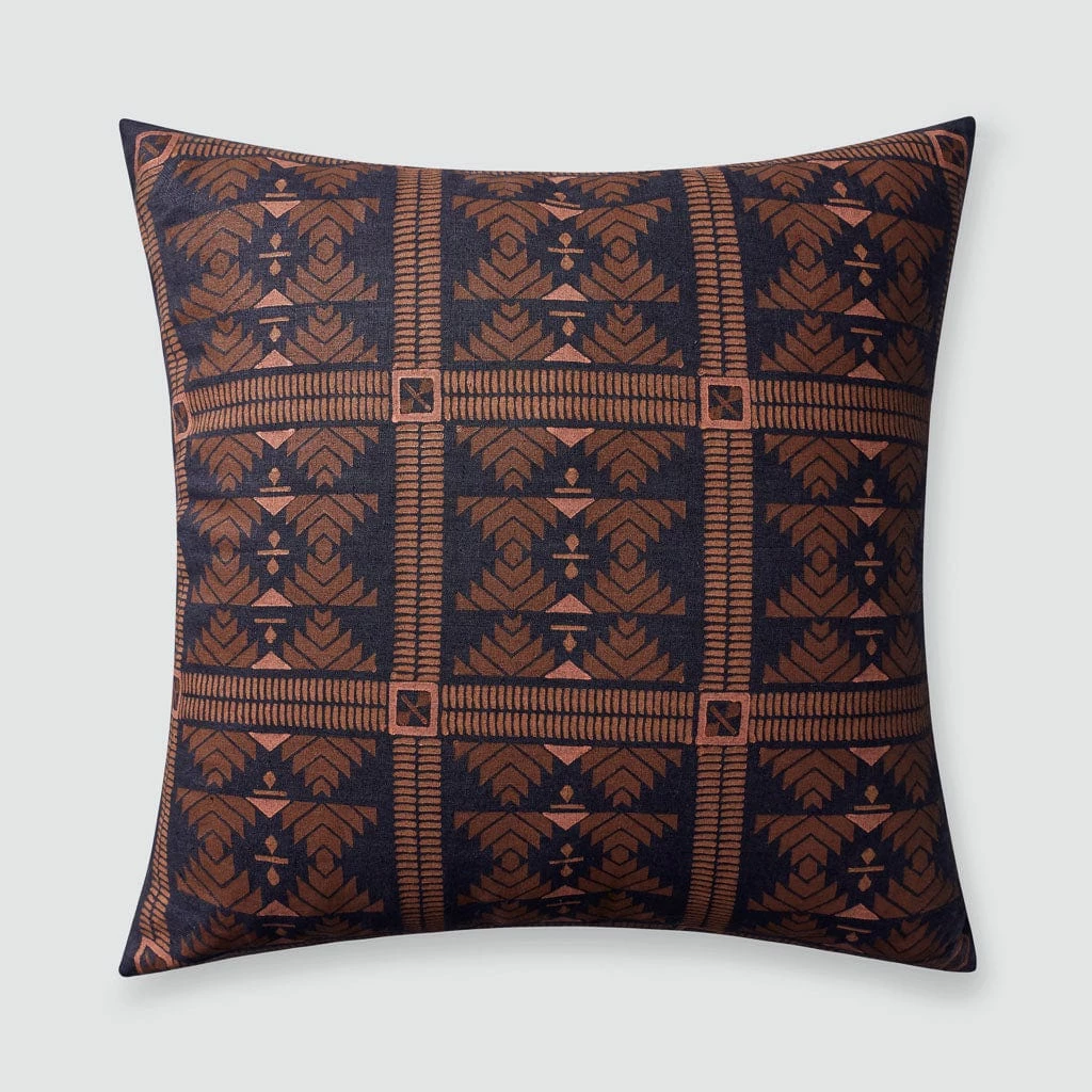Each pillow is block printed by hand on locally sourced linen by master artisans in Jaipur, India. All made start-to-finish in a fair trade working environment.
