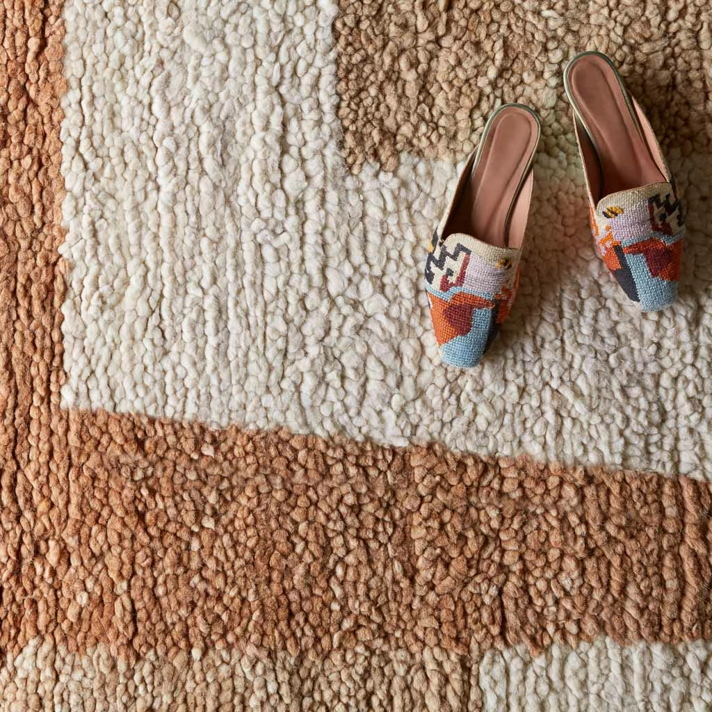 Geometric pattern. Rich earth tones. Put the finishing touches on your entryway or bedroom with a little help from this luxe accent rug. Inspired by the clean, abstract lines of modern art, every piece is masterfully crafted from soft wool for a rug that will last for years.