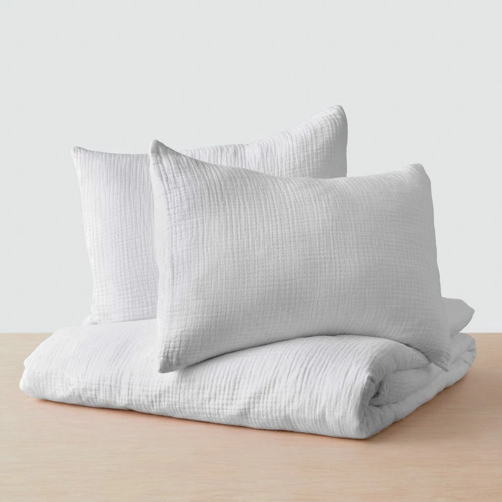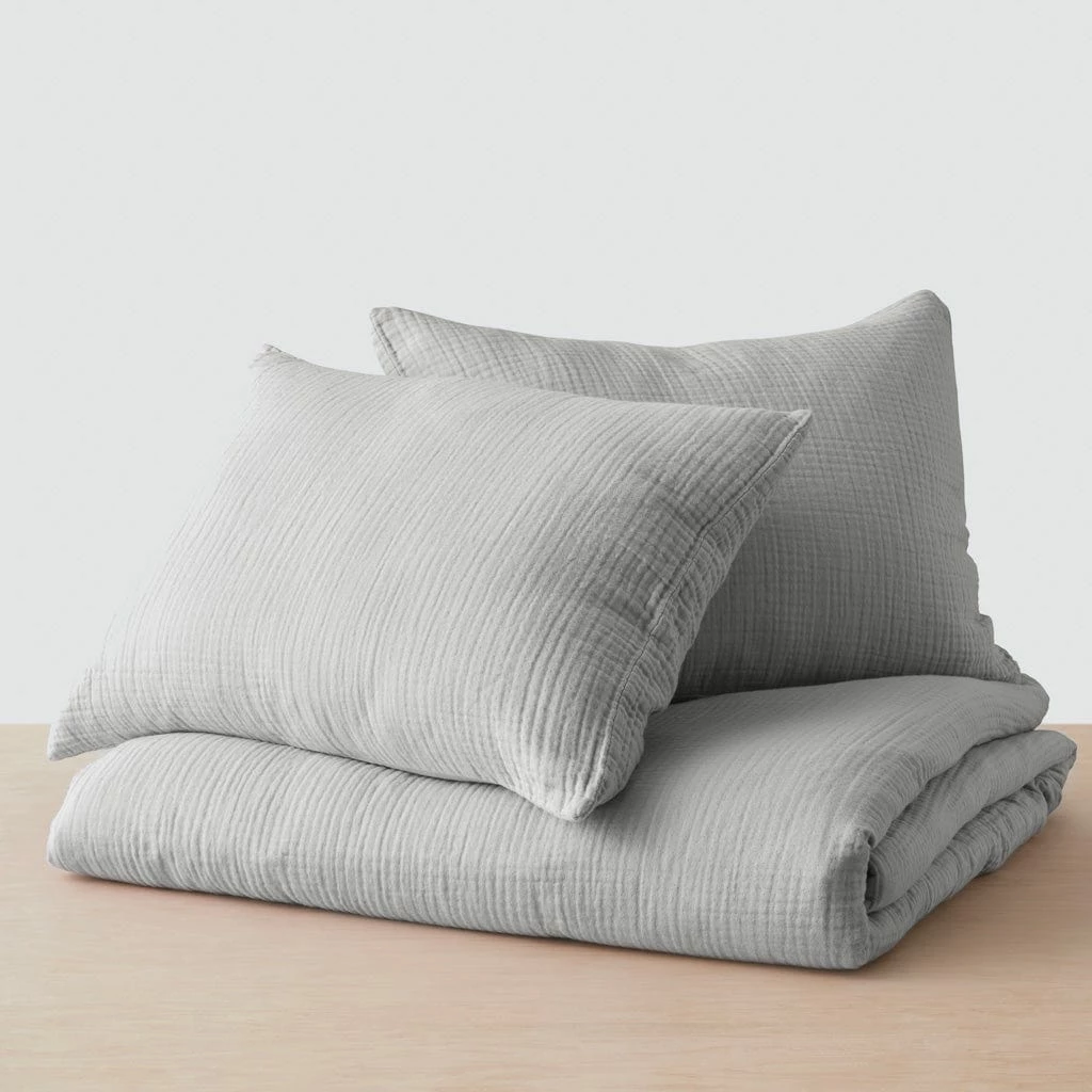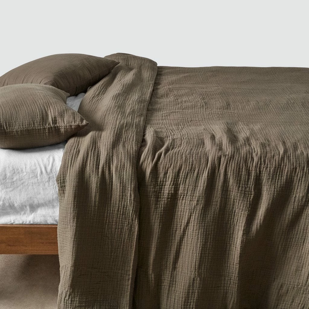 Made with four layers of airy cotton, this soft gauze bedding is extra fluffy and perfectly textured for a relaxed, effortless look. Lightweight and breathable, it’s the ideal layer for creating an extra comfy, cozy-up bed. For the ultimate laid-back style, pair with our stonewashed linen sheets.