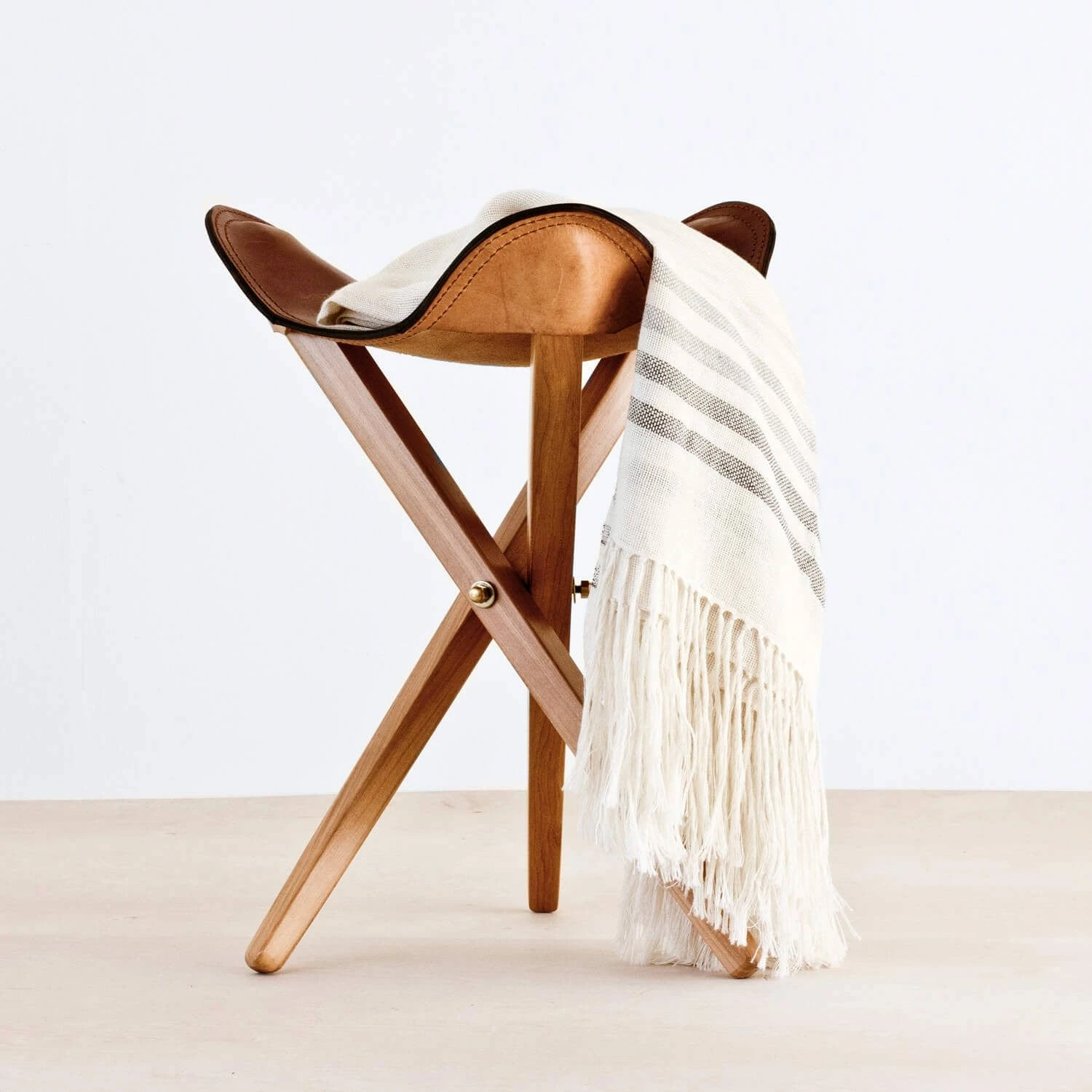 This little guy was designed to complement our Palermo Tripolina Chair. The triangular cover is made of thick 100% Argentinian polo saddle leather that, like a fine wine, ages beautifully. All hand-dyed and stitched in a small workshop in Buenos Aires.
