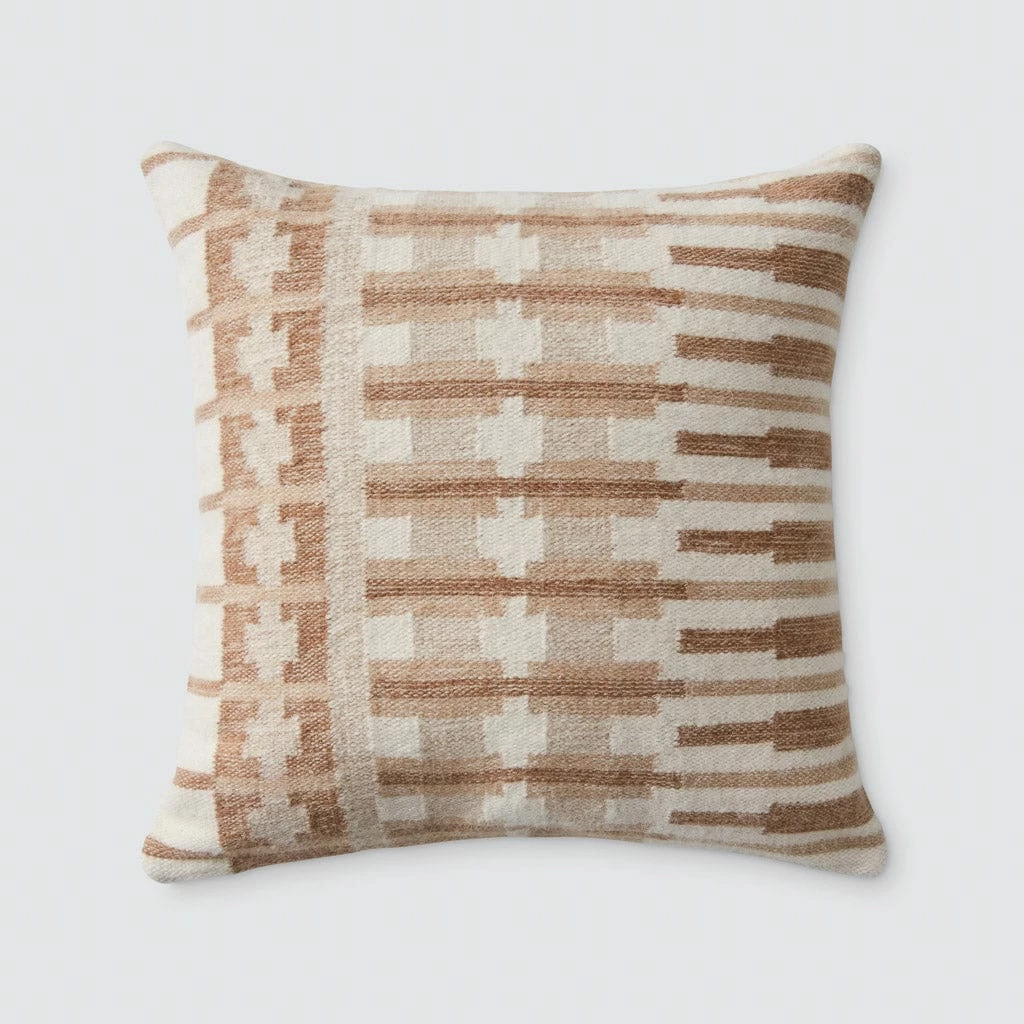 The perfect finishing touch for your chair or sofa, this effortless pillow is woven with a lovely set of stripes, accented by three gorgeous patterns to create an easy accent pillow for the modern home. Woven from a blend of wool and alpaca, style solo or as part of a set of pillows. Pairs well with our Claro, Dhara, and Pilar pillows.