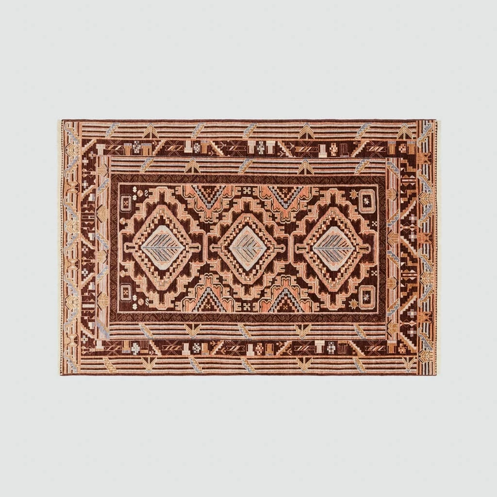 Our most traditional rug has timeless appeal. Knotted by hand in the mountains of Afghanistan, this beautiful area rug features three medallions at its heart, accented with nomadic shapes and motifs along its borders. Available in both rust and navy, this wool rug is truly like no other.