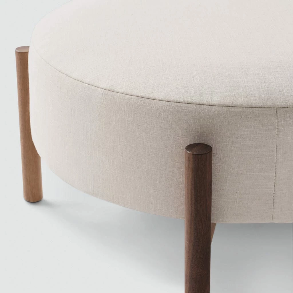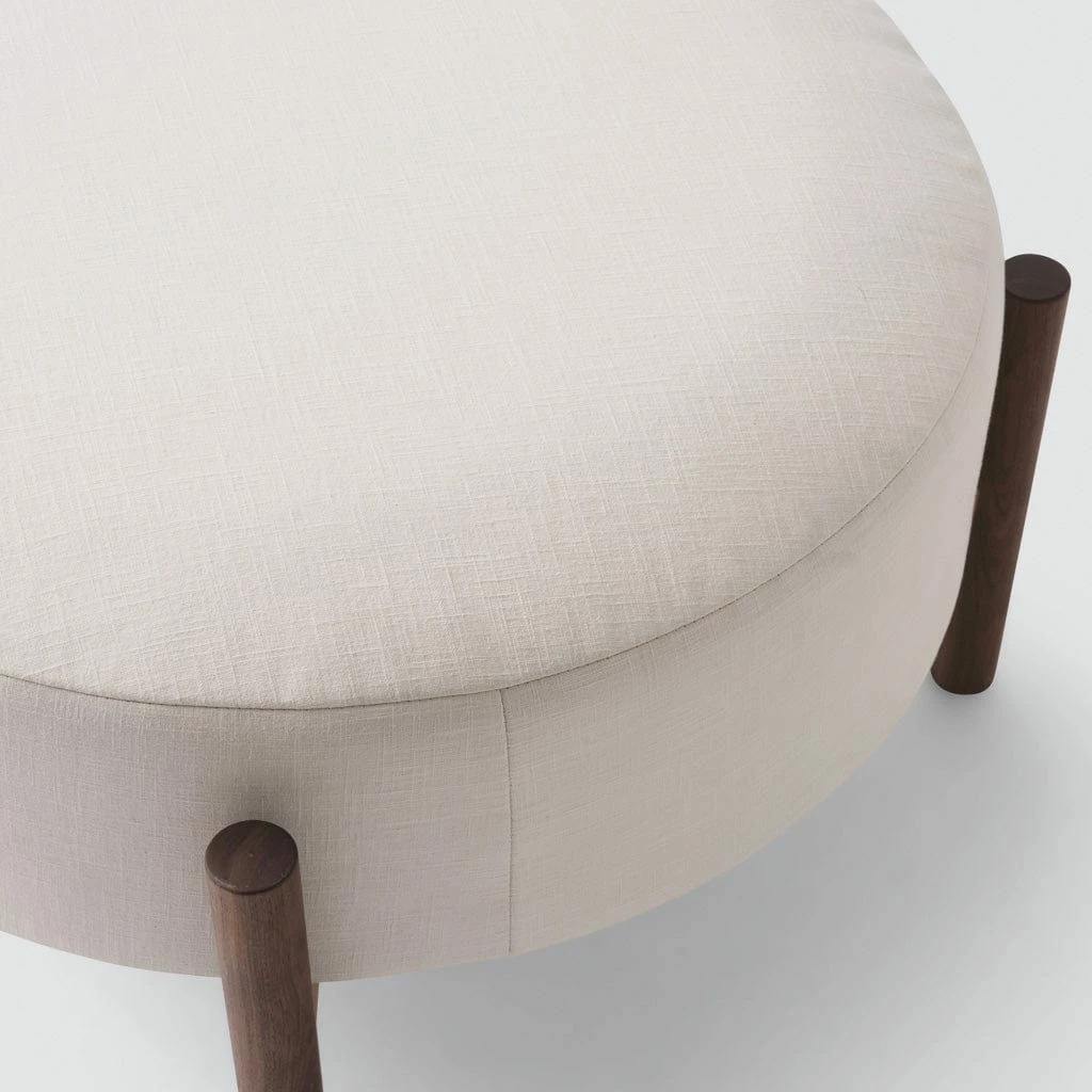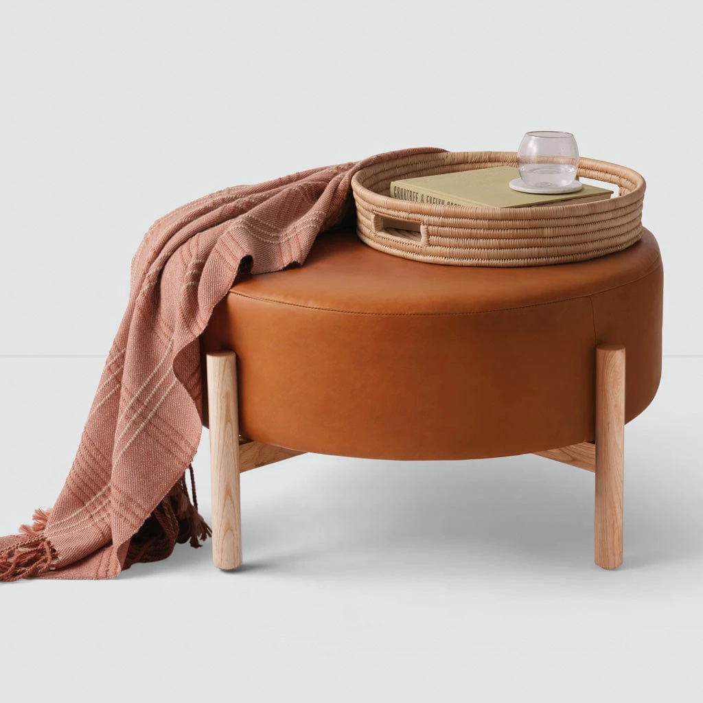 Whether styled as a bit of extra seating or just a place to rest your feet, this versatile round ottoman adds a luxe, modern accent to any space. Available in rich leather and crisp linen, each piece is crafted with a sturdy, lightweight frame of ash or walnut.