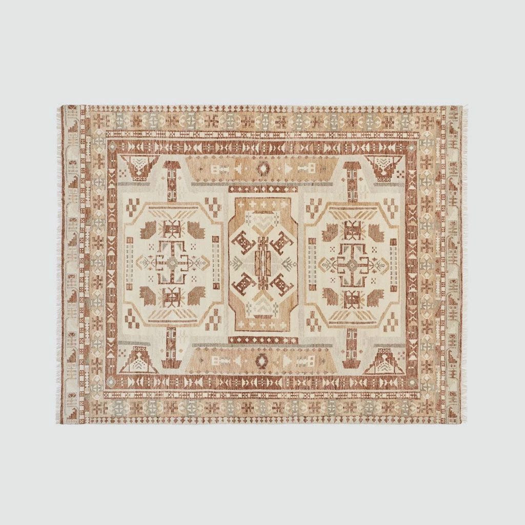Tradition and modern style meet in this handsome hand-knotted rug. Blending shades of tan, camel, and rust, this timeless rug combines the intricate medallion motifs seen in this region of the world with contemporary geometric twists to create a seamless addition to any home.