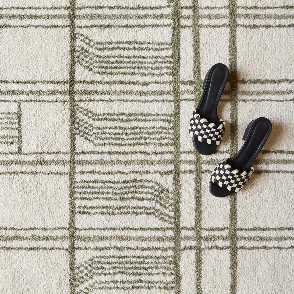 More luxe than a traditional flat-weave, this elegant area rug is hand-knotted for a soft, extra plush texture that invites you to kick off your shoes. Crafted to be passed down for generations, this piece blends traditional patterns for a globally-inspired aesthetic. Available in both olive and sand.