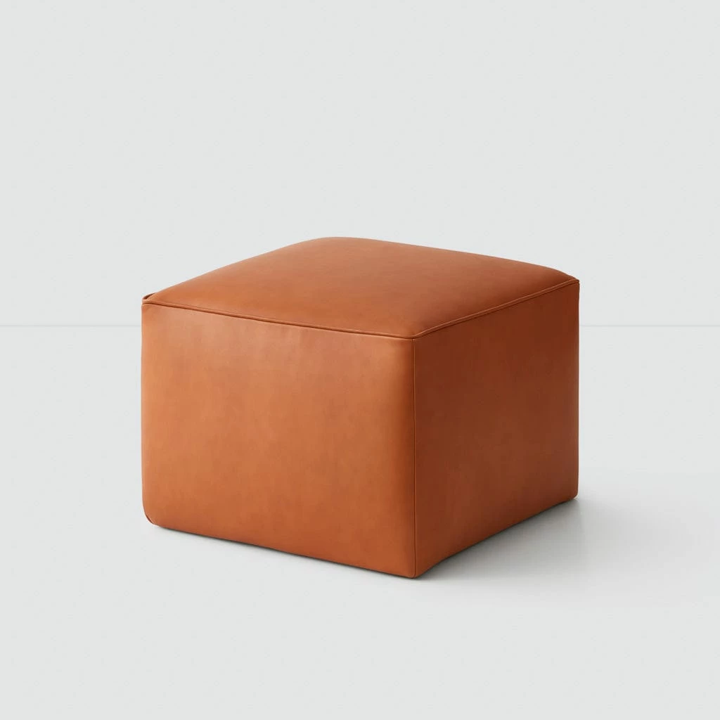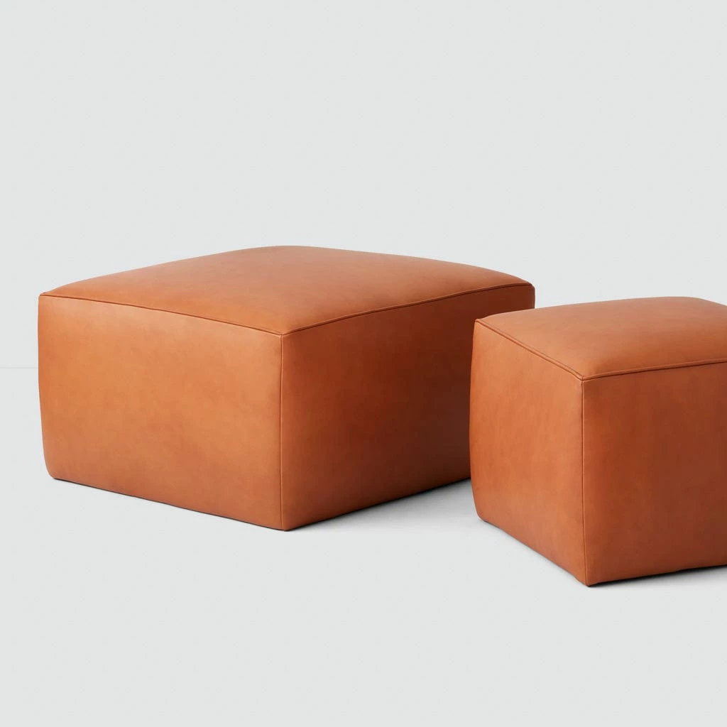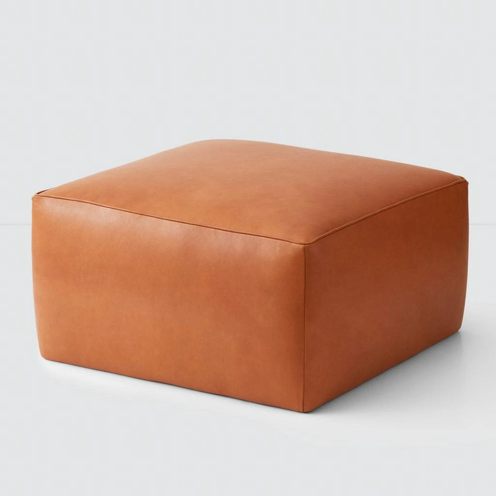 As luxe as it is handsome, this square leather ottoman instantly ups the game of your space with its rich, caramel hue and handcrafted details. Thanks to its sturdy, padded wood frame, style as extra seating or as coffee tables. Available in two sizes, let them fly solo or mix together depending on the size and scale of your room (heads up: the large ottoman is fairly hefty).