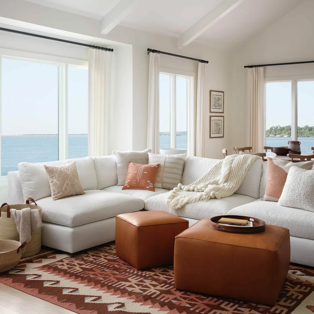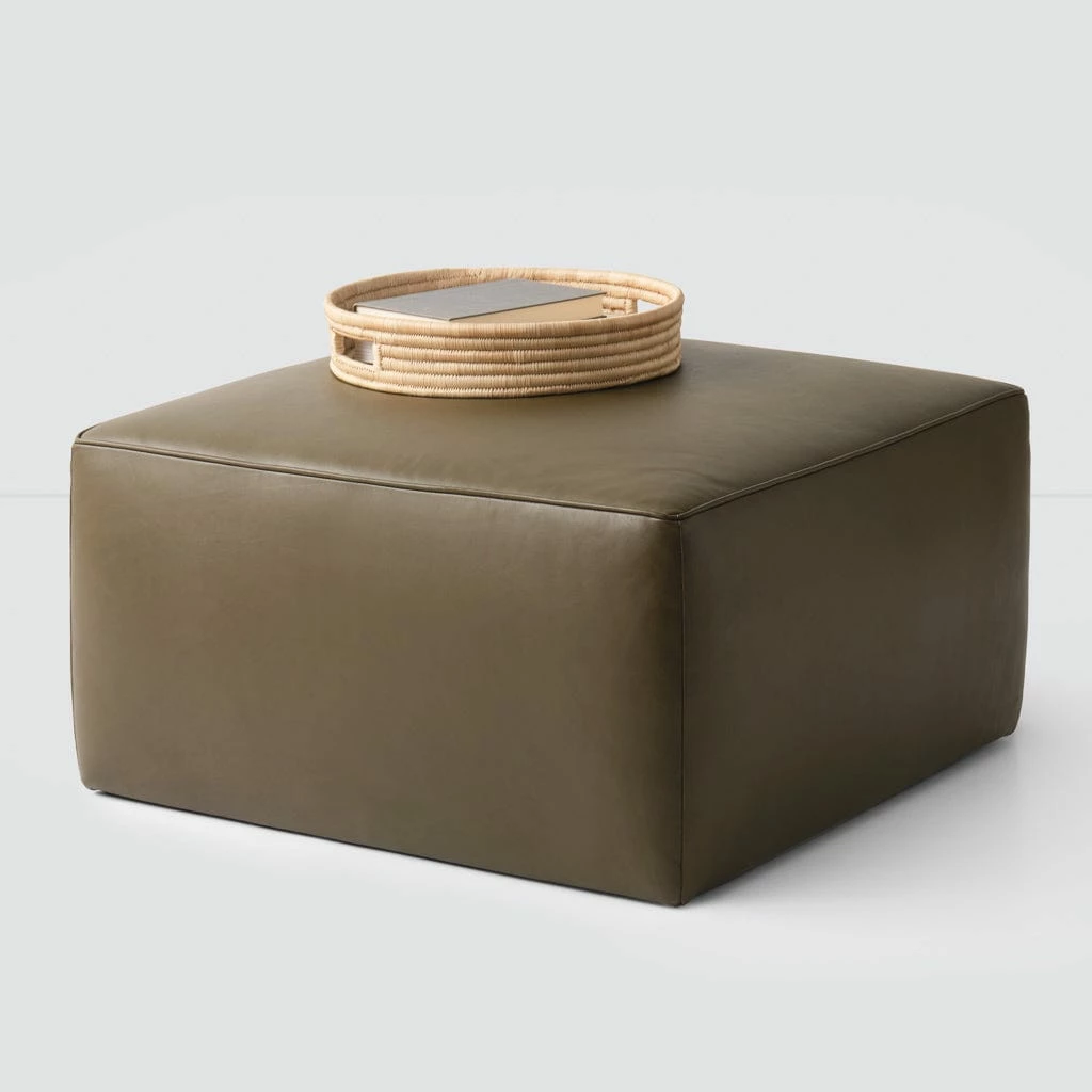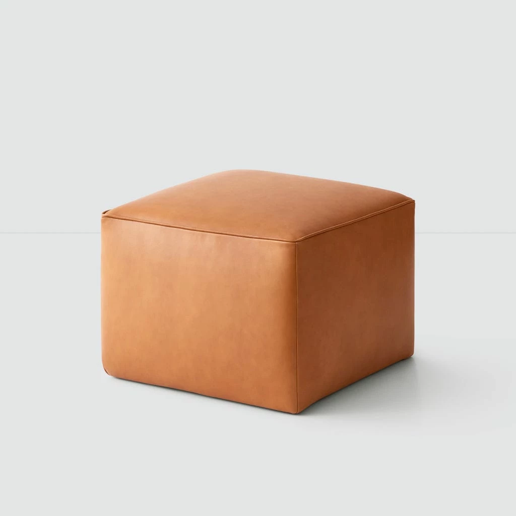 As luxe as it is handsome, this square leather ottoman instantly ups the game of your space with its rich, caramel hue and handcrafted details. Thanks to its sturdy, padded wood frame, style as extra seating or as coffee tables. Available in two sizes, let them fly solo or mix together depending on the size and scale of your room (heads up: the large ottoman is fairly hefty).
