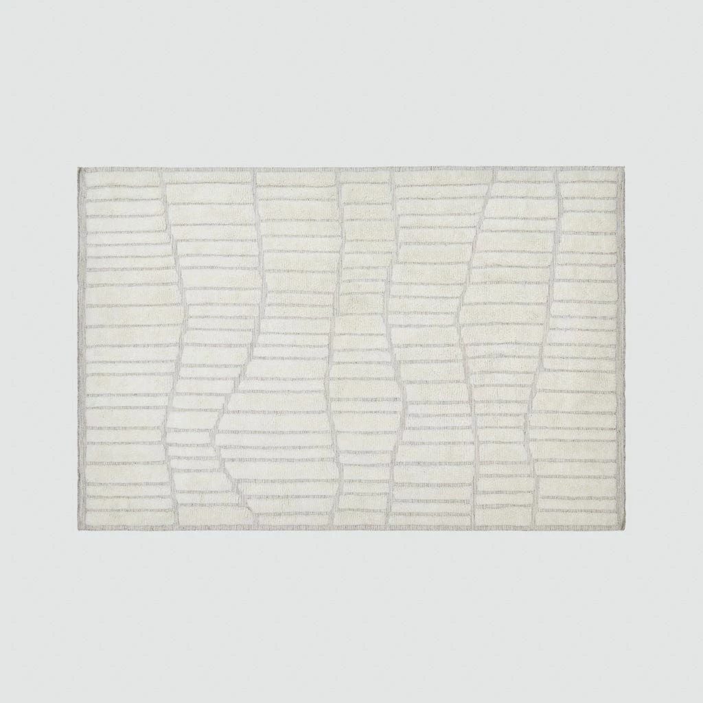 Get a view of the mountains without leaving home, thanks to the paintbrush-style waves of this textured rug. Inspired by the renowned peaks of India, each piece blends undyed wool with marled ecru to create its classic light grey lines. Style as the centerpiece of your living room or as an eye-catching addition to your home office.