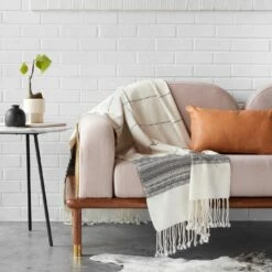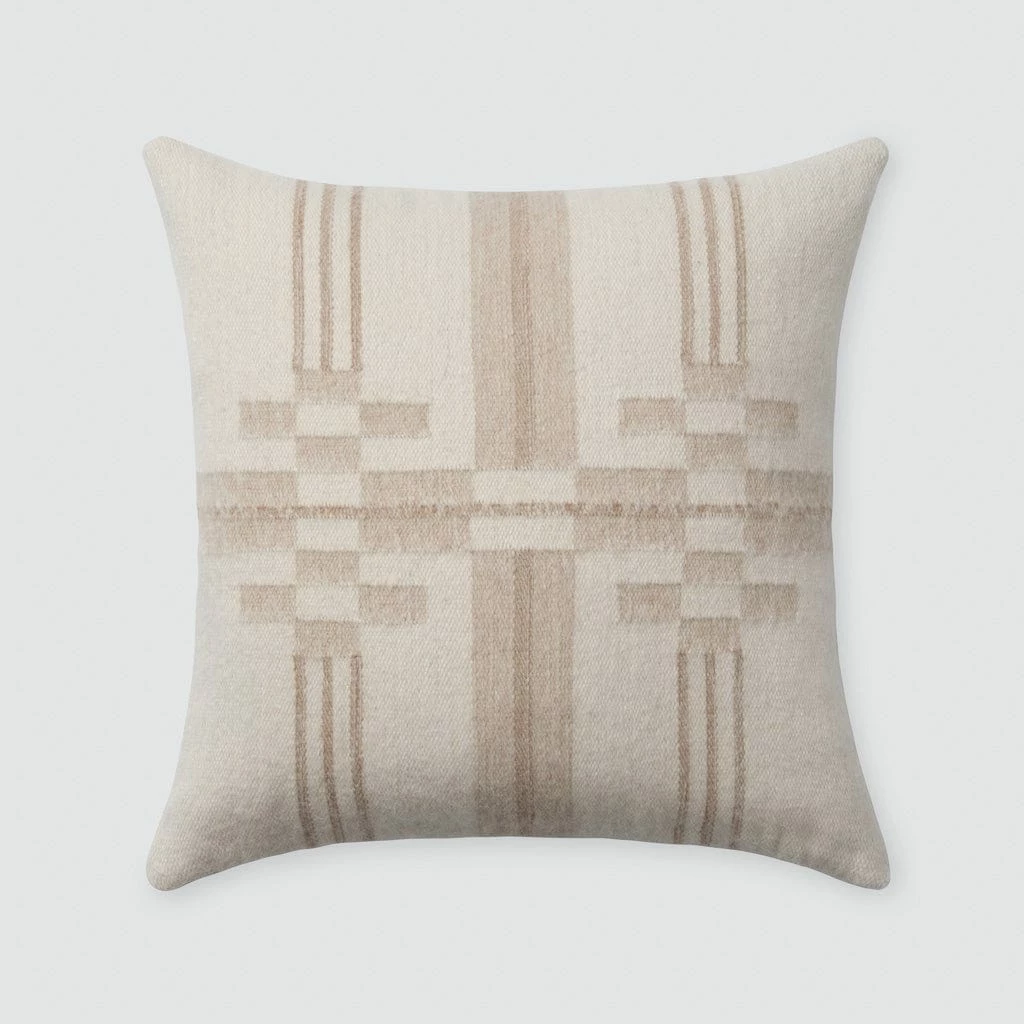 A modern, grid design in a soft palette of warm tans, oatmeal, and ecru. This wool accent pillow adds a timeless, artful look to any space. Thanks to a special weaving technique, look closely and you’ll see the best part – a marled, subtly textured yarn that adds just the right amount of interest.