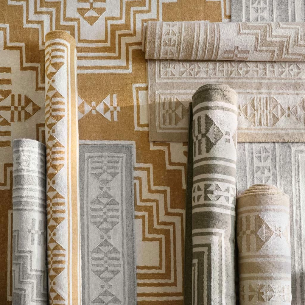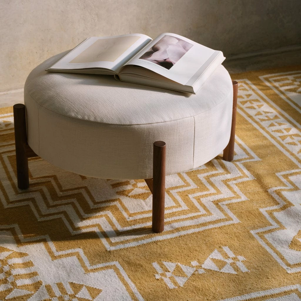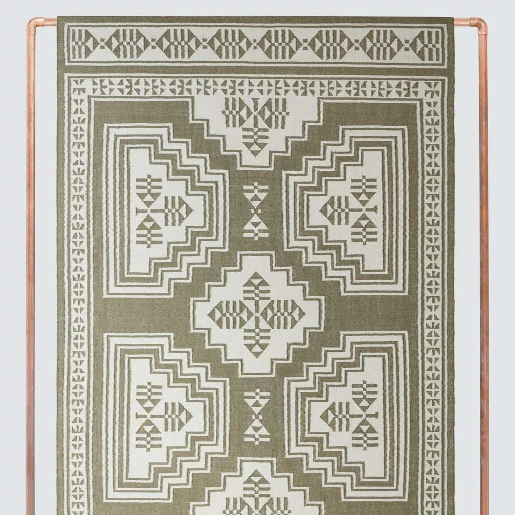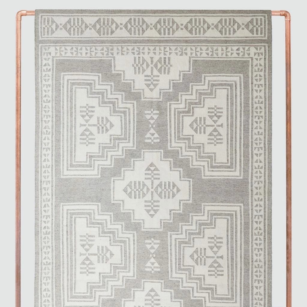 Mixing bold, geometric patterns with statement hues, this stunning area rug is inspired by the cascading staircases found in monuments and sacred sites around India. Style it in a bedroom, living area, or dining room – anywhere it goes, this flatweave area rug is sure to make a statement.
